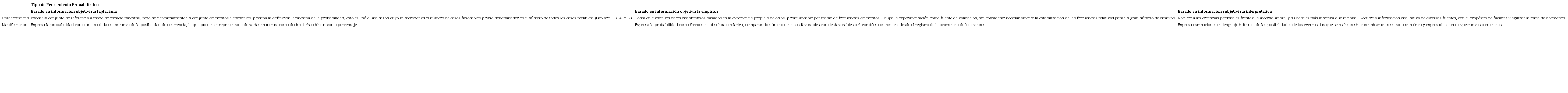 En base a lo anterior se han considerado tres tipos de pensamiento probabilístico, los que se caracterizan en la Tabla II.