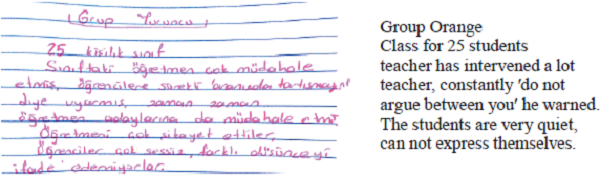 ‘The teacher behaved exactly as he should have. He helped our friends with classroom silence and control. In addition, the students did not direct them while doing the activity. It is clear that he is much better than the teacher standing at the head of our friends last week’ (Şevval-preservice teacher).