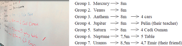 ‘The activity was interesting. Most of the groups were willing to figure it out. It felt different because they had not done such activities before and they did not do group work. Several groups discussed among themselves and found good results and expressed themselves well on the board. They discovered estimation skills and how to use ratio in such a problem’ (Didem-pre-service teacher-for Largest Shoe Size in the World activity’
