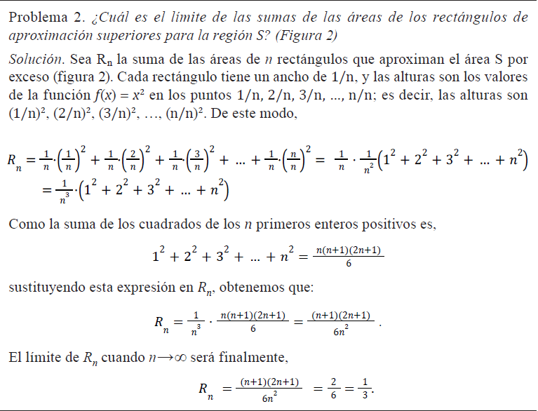 P2: El límite de las sumas de las áreas de los rectángulos de aproximación superiores para la región S es 1/3.