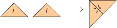 Así que, se realizó, al principio, una práctica con el tangram para observar las piezas, manipularlas y establecer las equivalencias entre ellas. Los alumnos disponían cada uno de un juego de tangram y habían realizado distintas construcciones para observar dichas equivalencias. Tenían varias copias en cartulina del triángulo pequeño (pieza base del tangram) y podían manipular libremente las piezas. Por ejemplo: