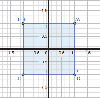 Observamos então que, por exemplo, os triângulos equiláteros, os quadrados e os hexágonos regulares satisfazem a condição de ser um polígono regular. Em se tratando de geometria espacial, esta contempla as propriedades dos objetos tridimensionais. Como exemplo, temos os sólidos geométricos como as pirâmides, o octaedro, os prismas regulares, o cilindro, o cone e a esfera. Notemos que os corpos redondos citados podem ser obtidos por rotações do plano, isto é, existe uma figura geométrica plana cuja rotação sobre certo eixo gera o sólido. Para ilustrar, consideremos, no plano cartesiano, os pontos A = (1,1), B = (-1,1), C = (-1,-1) e D = (1, -1).