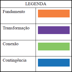 Ao se analisarem os dados produzidos, foram encontradas ações significantes relacionadas a esses domínios de conhecimento (matemático e pedagógico), caracterizadas através de 18 códigos (Rowland et al., 2005). Feito isso, foram propostas quatro amplas dimensões (ou unidades) que englobam esses códigos. As dimensões são: (i) Fundamento, (ii) Transformação, (iii) Conexão e (iv) Contingência (Rowland, 2013; Turner & Rowland, 2008). Ressaltamos que, por ser uma teoria relativamente nova, o KQ vem sendo estudado e ampliado por outros pesquisadores (Thwaites et al., 2011), além dos seus criadores; e novos códigos foram e vêm sendo identificados, de modo a aprimorar e ampliar a aplicabilidade do seu uso (Rowland & Turner, 2017).