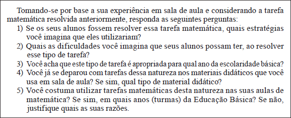 Por meio destas questões é possível (i) levantar o conhecimento matemático que cada professor utilizou na resolução da tarefa matemática, verificando em que medida foi usado um conhecimento mais próximo da matemática acadêmica ou mais próximo da matemática escolar, e (ii) levar os professores a conhecer e compreender as resoluções dos colegas, contribuindo para sua própria aprendizagem.