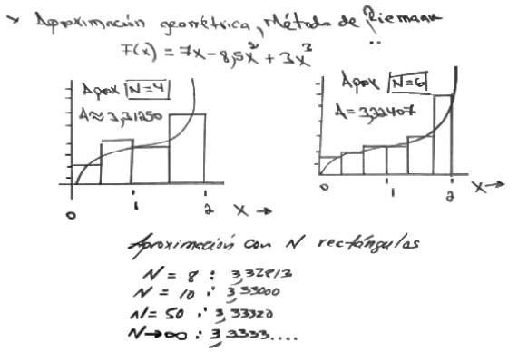 Estimación del área bajo la curva “La integral como límite del área” o “suma de Riemann”. Calcule la suma de Riemann para la para la función en el intervalo . Aplique GeoGebra y compare con el cálculo manual.