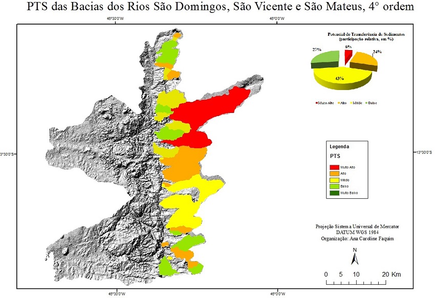 Somando as sub-bacias de 4ª ordem hierárquica dos Rios São Domingos, São Vicente e São Mateus, há um total de 37sub-bacias, alcançando uma área de 872,03 km². As sub-bacias identificadas como muito alto Potencial de Transferência de Sedimentos ocupam uma área de 6%, 24% apresentaram potencial alto, 43% apresentaram potencial médio e 27% das sub-bacias apresentaram potencial muito baixo.