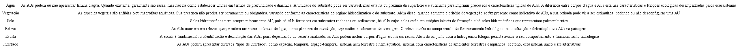 O Quadro 2 apresenta uma síntese do papel dos fatores hidrológicos, pedológicos, vegetacionais, geomorfológicos e das escalas espaço-temporais na formação, definição, identificação e delimitação das AUs.