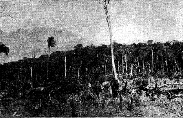 Segundo Waibel (1948), a paisagem da CANG era formada por uma vegetação característica de florestas, por isso chamaram a região de Mato Grosso de Goiás. Durante a estação seca era comum o fogo nas matas, de acordo com as "informações do Dr. Sayão, diretor da Colônia Agrícola Nacional, o fogo invade até as partes mais remotas dessas florestas, destrói a vegetação original e causa uma mata secundária, rica em bambus altos, muito semelhante à que cresce nas roças abandonadas" (Waibel, 1948, p 11). A Figura 7 mostra a vegetação existente na área da CANG na década de 1940.
