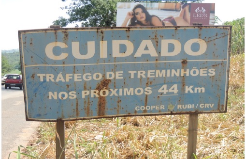 A leitura dos artigos de Léo Waibel contribue para ratificar o quão diferente se tornou a paisagem da microrregião Ceres ao longo dos contextos estudados e como as formas e os elementos materializados hoje na paisagem estão muito vinculados à lógica da agricultura capitalista. A Figura 8 mostra um exemplo de um elemento da paisagem que introduz ao morador, visitante ou pesquisador a lógica socioeconômica da região: uma placa na rodovia (assinada pelas usinas Cooper Rubi e CRV Industrial), muito comum ao logo das estradas da microrregião Ceres, sinalizando o intenso tráfego de treminhões nos próximos quase 50 km de pista.