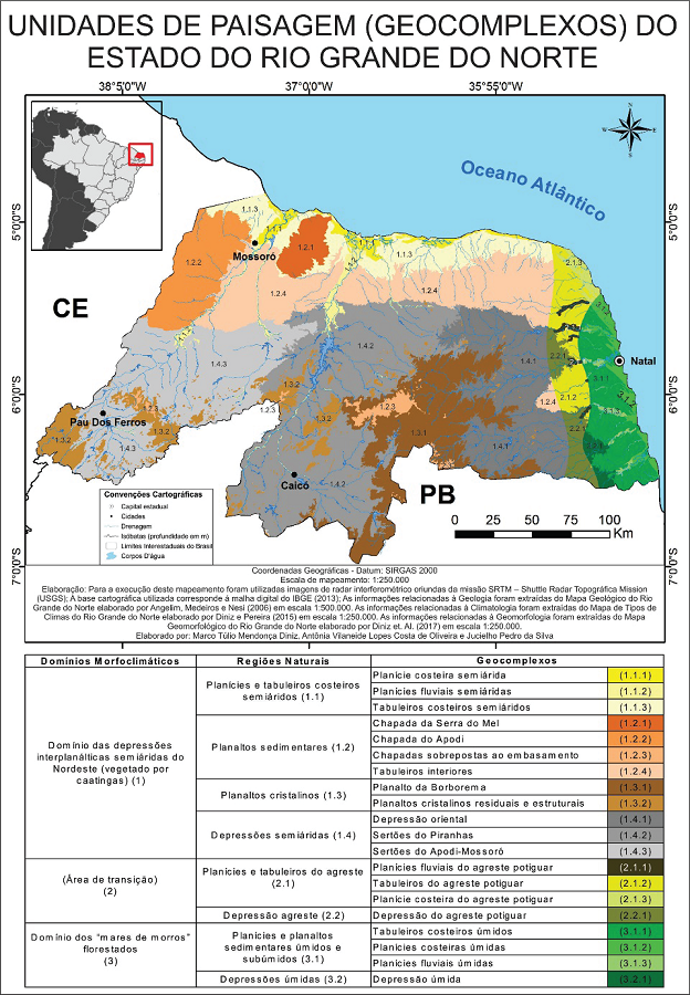 DINIZ, M. T. M.; OLIVEIRA, G. P.; MAIA, R. P.; FERREIRA, B. Mapeamento Geomorfológico do estado do Rio Grande do Norte. Revista Brasileira de Geomorfologia, v. 18, n. 4, p. 689-701, 2017.