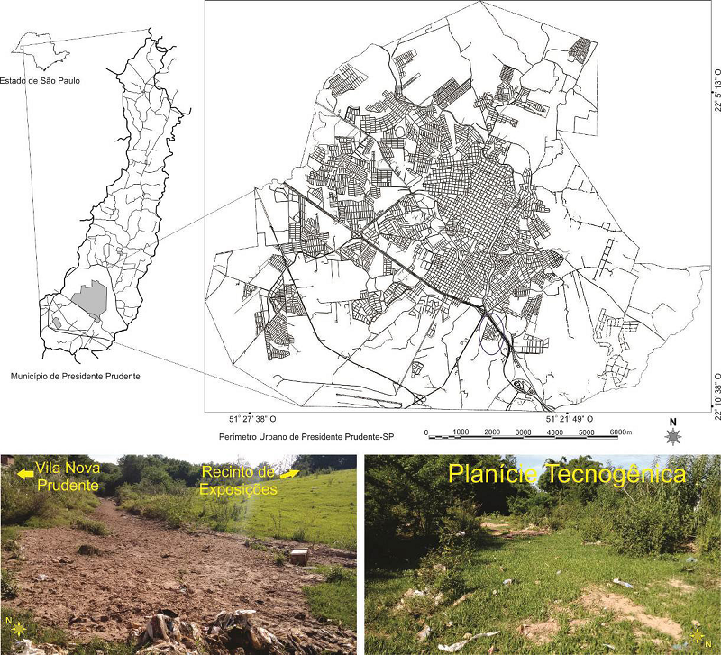 Na cidade de Presidente Prudente-SP, durante os estudos de Silva (2009, 2012, 2017) foram identificadas formações de depósitos tecnogênicos localizadas em áreas de fundos de vale, classificadas como construídas e induzidas, de acordo com Oliveira (1990). Essas formações foram relacionadas com os aspectos do histórico de uso e ocupação dos locais, com consequentes alterações em fatores e processos naturais nas paisagens, decorrentes das ações da sociedade.