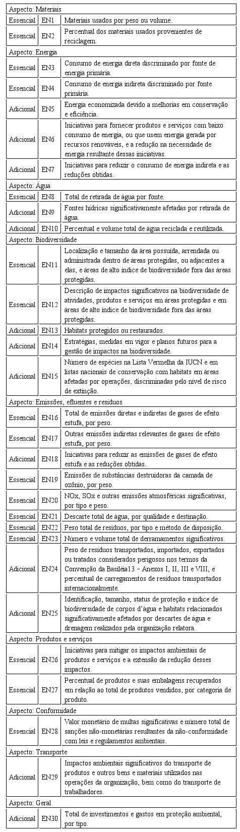 No que se refere especificamente aos trinta indicadores de desempenho ambiental, serão apontados apenas aqueles indicadores com informações relevantes para o presente estudo.