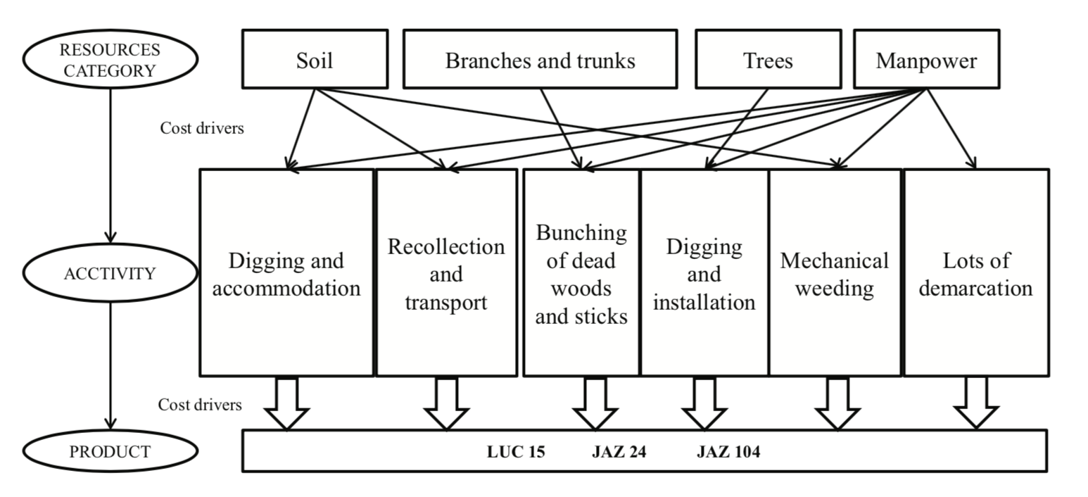 The ABC method assumes that there are activities that consume the resources, and the products and services consume the activities (Nakagawa, 1994). In Figure 3, there is a division of the resources in categories and their respective activity centers. By the analysis of Cost Drivers we can understand the dynamics of resource consumption and how products consume activities.