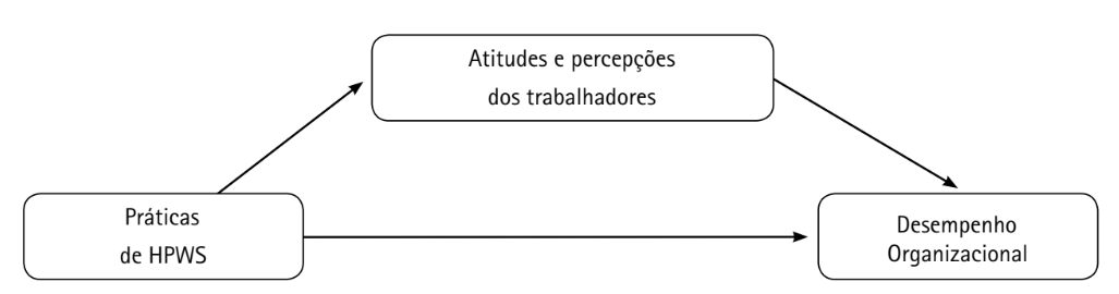 Para a prática empresarial, o estudo sugere a necessidade de os gestores prestarem atenção especial quanto às percepções e às atitudes dos seus funcionários, contemplando esforços para incrementá-las (mediante práticas de HPWS, por exemplo) e monitorá-las constantemente. O planejamento e a implantação de estratégias capazes de valorizar os recursos humanos são aspectos que podem influenciar o desempenho organizacional, sobretudo em termos de qualidade e produtividade. Para pesquisas futuras, o estudo pode ser ampliado, com a inclusão de mais empresas, de modo a verificar a possibilidade de generalizar os resultados. Outra recomendação é um aprofundamento no nível de implantação dos Sistemas de Trabalho de Alta Performance (HPWS) das empresas da amostra de modo a verificar como (e se) influenciam as atitudes e as percepções dos funcionários e, assim, avaliar um possível efeito entre práticas de gestão de pessoas e resultados organizacionais. Uma das recomendações de estudo é analisar um possível efeito mediador (Baron e Kenny, 1986) entre as variáveis, que é apresentado na Figura 2. Nesse esquema, entrariam as práticas de HPWS, o desempenho organizacional (que pode ser medido não somente por qualidade ou produtividade, mas também por indicadores financeiros e de mercado de capital, por exemplo) e as atitudes e as percepções dos funcionários. Pressupõe-se que as práticas de HPWS influenciem o desempenho organizacional de diversas maneiras, pois envolvem processos, relacionamento com clientes, fornecedores, entre outros fatores. Desse modo, poderia ser avaliado o efeito mediador das atitudes e das percepções dos trabalhadores na relação do desempenho organizacional.