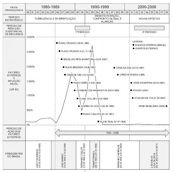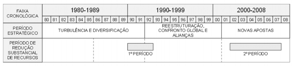 As designações atribuídas aos períodos foram escolhidas em função da observação da disposição e da intensidade de determinados fatores ao longo do período como um todo, ainda que alguns fatores característicos de certos períodos transcendam esses períodos. Os resultados de cada um dos períodos estratégicos não permitem uma apresentação detalhada em função da limitação de espaço, mas serão discutidos nos itens a seguir.