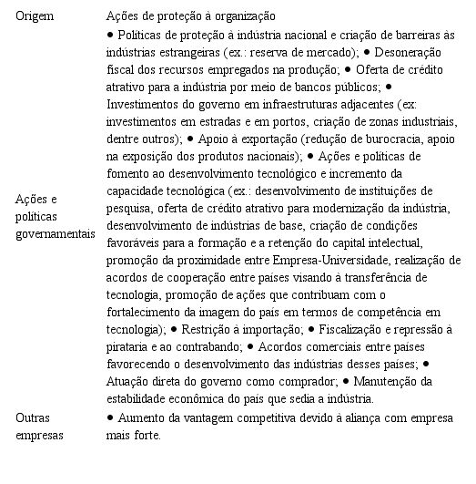 Cabe ressaltar que embora o governo tivesse protegido a indústria nacional durante certo período, em nenhum dos períodos analisados, foram encontradas políticas públicas claras e intervenções públicas que incrementassem a capacidade tecnológica das indústrias brasileiras assim como ocorreu na China (Hauser et al., 2007). Uma capacidade tecnológica requer tempo para ser adquirida. Ou seja, o desempenho futuro de uma empresa depende do passado da própria empresa e do ambiente com o qual ela interage (Barney e Hesterly, 2007).