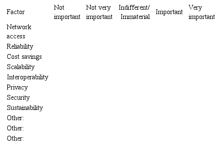 Network access is considered irrelevant by the respondents when adopting CC, as regards both the public and private clouds. A major reason for this is that the internal services, which are not in the cloud, can also be made available remotely. Ubiquity, a factor arising from access via the network, was also not taken into account, since use on other mobile devices, such as smartphones, is not important for the organization, while access through the company’s machines is.