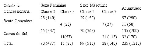 Ao final, eliminados os casos caracterizados como missing values e outliers, a amostra resultante totalizou 235 casos válidos (n = 235). Para a caracterização da amostra, foram levantadas informações a respeito do gênero dos respondentes, cidade da concessionária (unidade) onde foi adquirido o veículo e utilizados os serviços e sua classe. Uma visão geral da amostra de pesquisa é apresentada na Tabela 2.