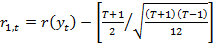 Posteriormente, Wright (2000) propôs o uso de testes de quociente de variâncias não-paramétricos baseados nos postos e nos sinais das séries temporais para testar a hipótese nula de que essas séries seguem um caminho aleatório. O quociente de variâncias com base nos postos baseia-se, segundo Ceretta (2001), nos postos das variações de preço com desenvolvimento matemático muito próximo ao teste de Lo e Mackinlay (1988). Dessa forma, Wright (2000) propôs os testes de postos R1 e R2, representados pelas formulações (6) e (7), e o testes de sinal S1, exposto na formulação [8], como alternativa aos testes M1 e M2 propostos por Lo e Mackinlay (1988).