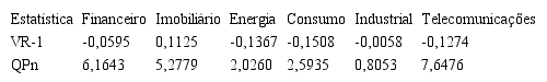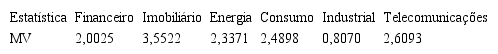 Baseando-se nos resultados calculados para o teste de quociente de variância conjunta de Chow e Denning (1993), presentes na Tabela 3, observa-se que tanto o setor Imobiliário como o setor de Telecomunicações rejeitam a hipótese de caminho aleatório, não exibindo, assim, eficiência na forma fraca.
