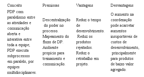O Quadro 1 resume algumas das características que podem surgir quando se opera com desenvolvimento integrado de produtos e com equipes multidisciplinares.