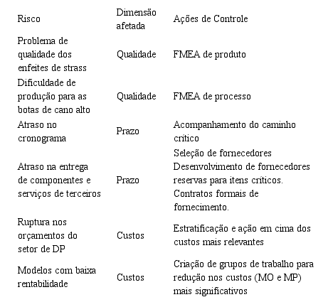 · Criação de uma Célula Rápida de Desenvolvimento de Produtos (CRDP) com a presença do estilista da marca, um modelista técnico, um auxiliar de modelagem, um de engenharia e um especialista em artes gráficas. Um dos membros da equipe executa os trabalhos técnicos e administrativos, tais como o cadastro de especificações, e o outro, a confecção dos protótipos, resultando alguma multifuncionalidade nas tarefas;