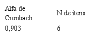 O resultado desse teste de confiabilidade por meio do alfa de Cronbach mostrou-se desejával, alcançando um índice igual a 0,903, o que atesta a confiabilidade da escala utilizada.