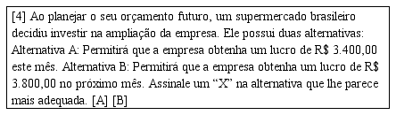 Conforme é possível observar no exemplo apresentado pela Figura 2, foram propostas duas opções, sendo a primeira referente a uma aplicação de recursos cujo retorno é imediato ou em um curto período de tempo e uma segunda opção onde a aplicação de recursos possibilitará o retorno em um futuro não tão próximo ou remoto.