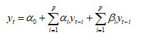 É importante salientar que o fato de x causar y não quer dizer que y é efeito ou resultado de x. A causalidade de Granger mede a precedência da variável, as informações nelas contidas, não tendo, portanto, o sentido estrito de causalidade. Como a teoria é baseada em termos da importância das informações passadas, aconselha-se utilizar um número maior de defasagens (lags). As regressões bivariadas para esse teste são expressas desta forma: