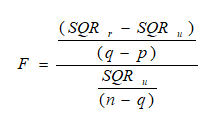 SQRr soma dos quadrados dos resíduos da equação com restrição;