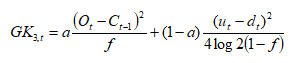 Onde a é uma constante. Garman e Klass (1980) comentam que, se utilizado o valor de a = 0,17, tem-se uma minimização da variância da expressão (4).