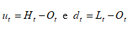 onde e são as cotações de máximo e mínimo normalizada pelo índice de abertura, respectivamente.