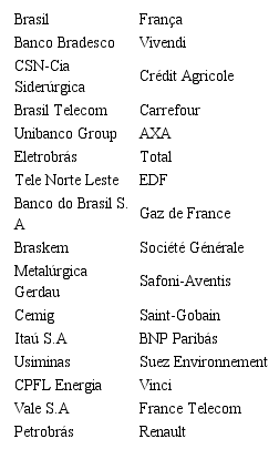 Visando à equidade no tratamento das unidades de estudo, optou-se por utilizar a lista das duas mil maiores empresas do mundo fornecida pela revista Forbes (http://www.forbes.com/global2000/), pelo fato de ela conter tanto as maiores empresas francesas, como as maiores empresas brasileiras. Outra vantagem em se adotar a classificação da Forbes global 2000 advém da metodologia empregada. No lugar de simplesmente vendas, que pode dar uma falsa impressão sobre o tamanho de uma companhia, utiliza-se um escore composto que leva em consideração vendas, lucros, patrimônio e valor de mercado na seleção das maiores empresas.