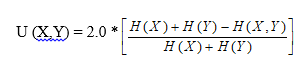 onde H(X) e H(Y) de (2) são os atributos, e Merits heurística é o “mérito” de um subconjunto Sk contendo atributos, rcf é a média da correlação entre classes, e rff a média da correlação entre os atributos.