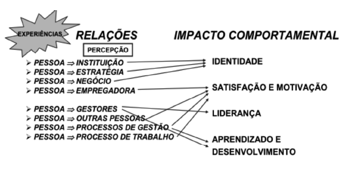 Os autores desse estudo fizeram a opção operacional de utilizar o questionário que foi elaborado e validado por Veloso et al. (2007); ele é utilizado nas Pesquisas das Melhores Empresas para se Trabalhar. Os autores consideram que as experiências que as pessoas vivenciam ao trabalhar em empresas propiciam o desenvolvimento de percepções. Por meio dessas percepções, as pessoas estabelecem vários tipos de relações que têm impacto no comportamento dos empregados. Esses impactos comportamentais influenciam o clima organizacional e podem ser classificados nas categorias: identidade, motivação e satisfação, liderança, aprendizado e desenvolvimento, conforme a representação da Figura 1.