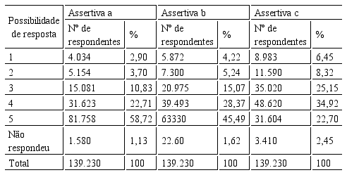 Os resultados descritivos obtidos denotam que há maior concordância com todas as assertivas do que discordância. A confiança na organização foi a que obteve maior número de respostas. Isso se confirma também para as respostas positivas, com nível de concordância de 81,43% do total de respondentes. Assim, pode-se dizer que as pessoas confiam na organização e que isso denota mais a percepção sobre os aspectos relacionados a leis e procedimentos organizacionais, pois, de acordo com Costa (2000), confiança em relação à organização diz respeito à relação estabelecida com o sistema formal, estando baseada em leis, regulamentos e nas práticas que mantêm a organização como um todo. A confiança organizacional no que tange à liderança é analisada na variável b; do total dos funcionários que responderam a questão, 73,85% acreditam que podem confiar nos seus chefes.