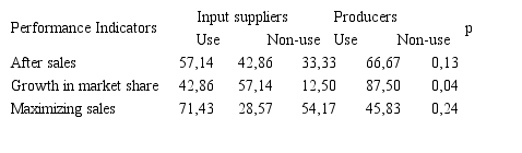 Furthermore, the results show significant evidence supporting the presence of specific metrics used more intensively by input suppliers than by producers. More importantly, the results indicated that input suppliers have been using non-financial performance indicators more frequently than producers.