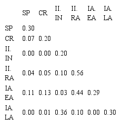 Continuing the analysis of the results, Table 2 shows the discriminant validity between the constructs. The values in the cells are the correlations between the constructs squared. According to Fornell and Larcker (1981), in order to achieve discriminant validity, the quadratic correlation between the constructs has to be lower than the variance extracted, which is arranged diagonally across the table.