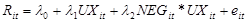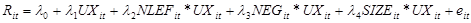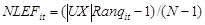 is the rank of the absolute value of UX of firm i at year t with N being the number of observations at a given year. The interactive term of NLEF is expected to have a negative and significant effect on ERC, since a higher absolute value of UX tends to decrease in the magnitude of ERC. The empirical model is: