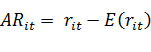 It was thus necessary to calculate the abnormal return for each company around the date its annual report was released. Abnormal returns are the difference between an asset’s actual return and its expected return in the market (Mackinlay, 1997), as shown in equation 2.