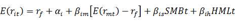 We also consider two standard models to calculate expected returns in the finance literature: the CAPM model (equation 3) and the Fama-French (1993) three-factor model (equation 4). The CAPM and Fama-French 3 factor model have been widely used in finance literature to calculate expected returns (Sharpe, 1964; Fama and French, 1992, 1993, 1996; Chordia and Shivakumar, 2006).