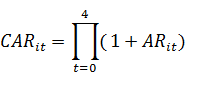 Once the expected return for each asset was calculated, we computed the abnormal returns for each day in the window, and finally estimated the cumulative abnormal returns (CAR) from the capitalization of the daily abnormal returns, according to equation 5: