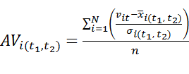 Loughran and McDonald (2011) calculated abnormal trading volumes using the average and standard deviation of trading volumes for the 60 days prior to the event. In the present work, we considered a 100-day span [-1, -101]. Subsequently, we standardized the trading volumes for each day in the time window. As a final step, we added the standardized volumes and calculated the average, according to equation 6.