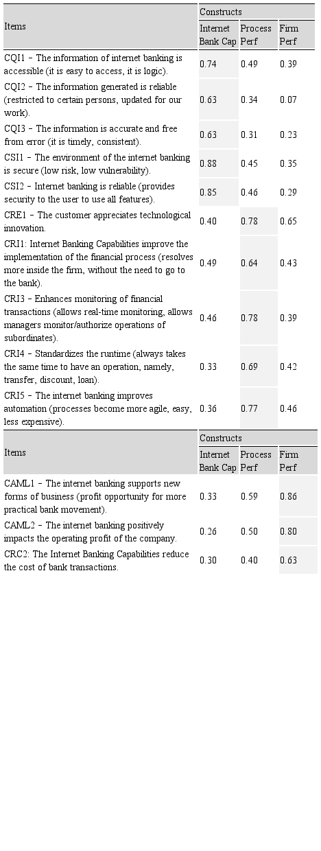 This study contributes to the literature insofar as the value of Internet Banking Capabilities is tested from the perspective of firms outside the banking industry (users). It confirms the advantages of using the internet banking, both at the process level and at the firm level. In addition, we propose a measurement model for internet banking and performance constructs – with adequate validity and reliability indicators according to the literature, which can be used to foster research around the external capabilities.
