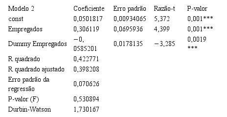 a variável empregados se dá da seguinte maneira: 0,30, assim quando do aumento de 1% no número de