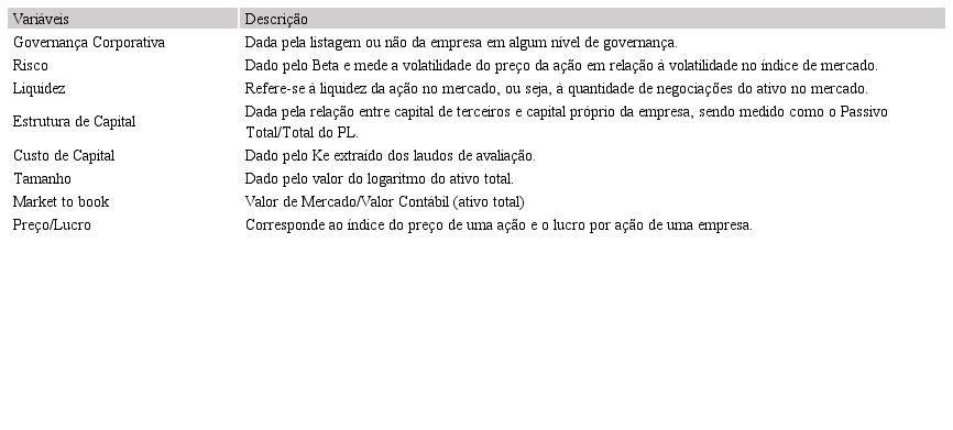 Ao propor a possibilidade da existência de relação entre assimetria da informação e os erros constantes nos laudos de avaliação das OPA’s, este estudo utiliza como proxies as variáveis contidas no estudo de Martins e Paulo (2014), como demonstradas no Quadro 3.