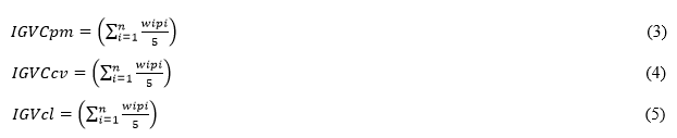 Assim, o primeiro passo foi a determinação dos índices parciais de geração de valor compartilhado. Para tanto, foram propostos três índices parciais: o índice de geração de valor compartilhado a partir do desenvolvimento de novos produtos ou mercados (IGVCpm), o índice de geração de valor compartilhado a partir da redefinição da cadeia de valor (IGVCcv); e o índice de geração de valor compartilhado a partir do desenvolvimento do cluster (IGVcl).