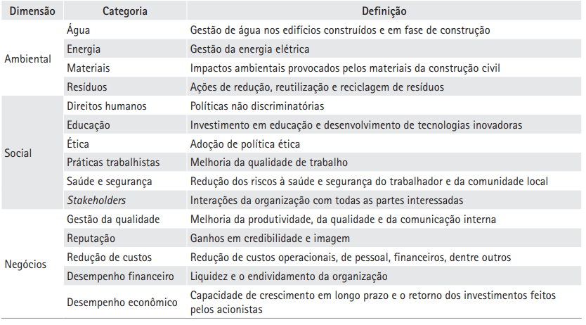 O processo de análise de conteúdo permitiu a aglutinação das variáveis-chave identificadas em 3 (três) dimensões e 15 (quinze) categorias que afetam o setor da construção civil. O Quadro 2 apresenta o resultado final da análise de conteúdo e as três dimensões e quinze categorias identificadas.