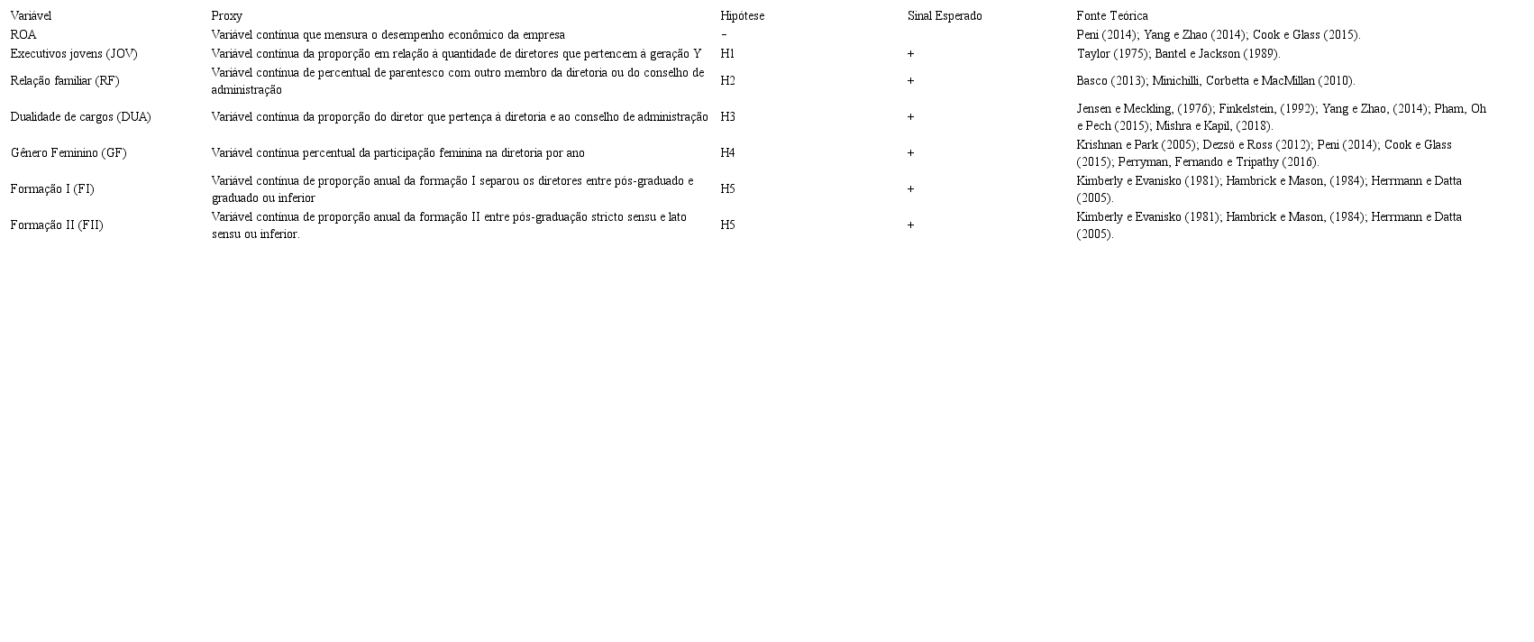 O estudo difere dos anteriores pela abrangência temporal ao analisar o período de 2010 a 2016, na qual se refere ao período que o Formulário de Referência se tornou obrigatório pelas empresas listadas na bolsa de valores brasileira. Dentre os estudos correlatos (Taylor, 1975; Jensen & Meckling, 1976; Kimberly & Evanisko, 1981; Hambrick & Mason, 1984; Bantel & Jackson, 1989; Finkelstein, 1992; Herrmann & Datta, 2005; Krishnan & Park, 2005; Minichilli, Corbetta, & MacMillan, 2010; Dezsö & Ross, 2012; Basco, 2013; Peni, 2014; Serfling, 2014; Yang & Zhao, 2014; Cook & Glass, 2015; Pham, Oh, & Pech, 2015; Perryman, Fernando, & Tripathy, 2016; Wang, Holmes, Oh, & Zhu, 2016; Bortoluzzi, 2017; Mishra & Kapil, 2018), observou-se que analisaram de uma a três características. Nesta pesquisa, foram elencadas, cinco características dos executivos (idade, gênero, formação, dualidade e familiaridade), no intuito de verificar e expandir o poder de explicação da aréa temática acerca dos atributos dos executivos de alto escalão. Ressalta-se ainda a escolha do setor de consumo não cíclico para análise por tratar de empresas cuja atividade principal é essencial para alimentação e higiene, sendo, portanto, menos volátil em aspectos econômicos.