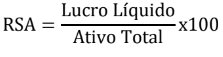 Segundo Marion (2012), a RSA representa o poder de ganho da empresa, quanto ela ganhou por real investido, o cálculo é feito através da divisão do Lucro Líquido pelo Ativo Total da empresa, cujo cálculo é o seguinte: